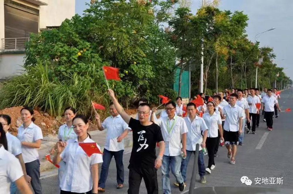 在這個舉國歡慶的日子里,安地亞斯董事長康丁華先生帶領我們安地亞斯的家屬,舉國旗,奏國歌,背紅旗徒步,弘揚愛國主義精神,為慶祝中國誕辰70周年,祝祖國生日快樂。